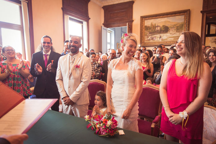Le mariage civil aura lieu à la mairie de votre domicile ou de celui de vos parents. Célébré par un officier d’état civil, ce dernier lira les textes de lois obligatoires lors de tout mariage. Les mairies permettent également des lectures faites par des proches lors du mariage et l’échange des alliances. Toutes ces étapes seront également photographiées pour immortaliser ces beaux moments.